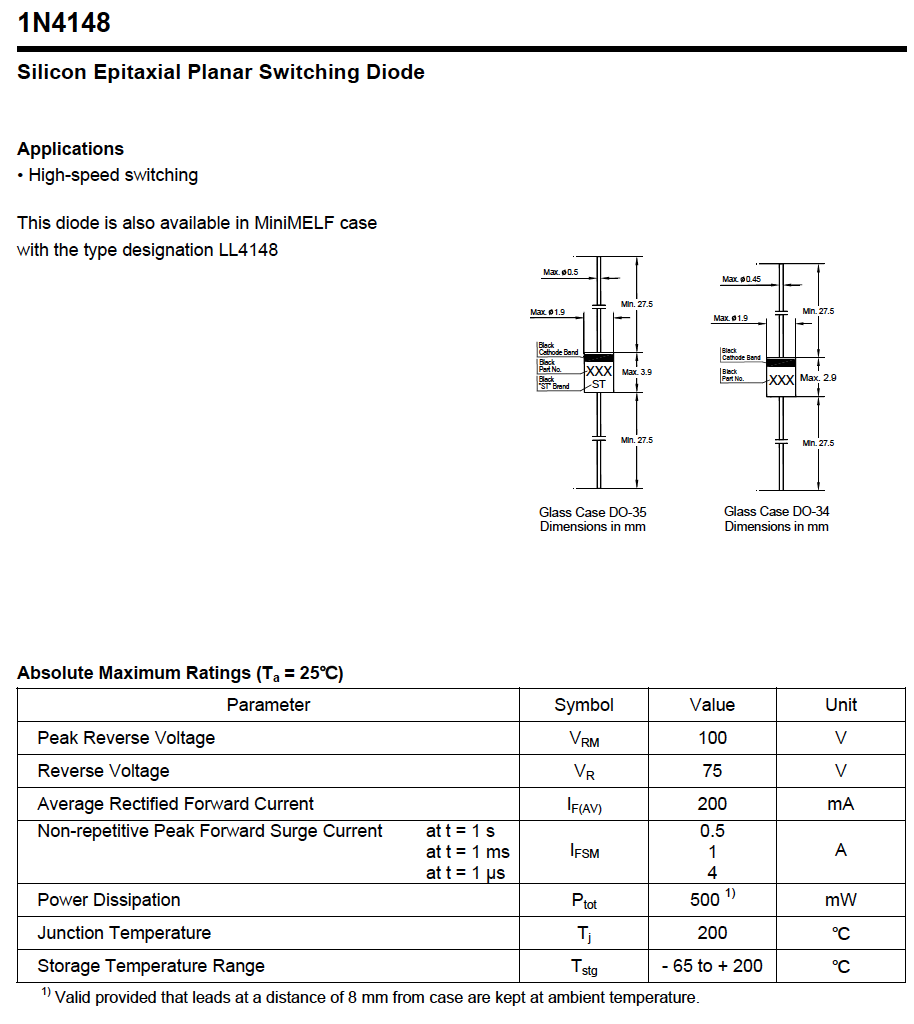 廠家直銷玻璃開關二極管 1N4148,1N4448 DO-35